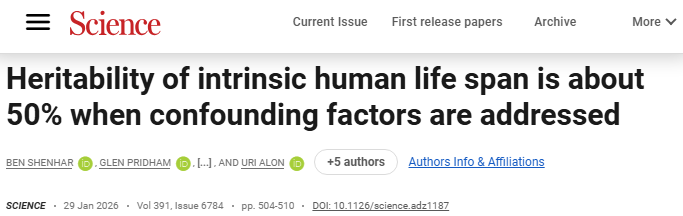 [1] 《东谈主类寿命究竟有若干由基因决定?Science重磅:东谈主类寿命超50%,早就写在了基因里》.梅斯精神新前沿2026-02-03