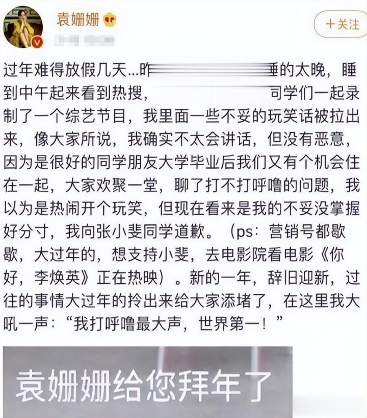 袁姗姗才为三年前的言论说念歉,被指蹭热度。