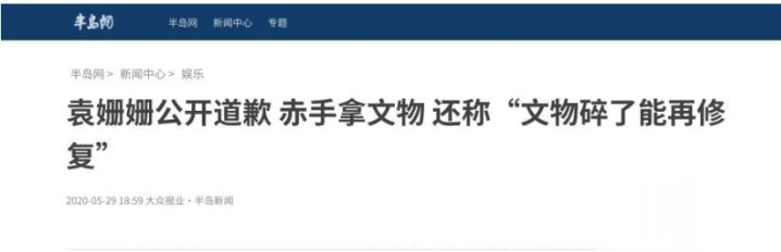 半岛新闻(袁姗姗公开说念歉白手拿文物还称“文物碎了能再开辟” 2020.05.29)