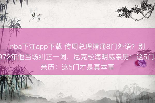 nba下注app下载 传周总理精通8门外语?别神话了!1972年他当场纠正一词,尼克松海明威亲历:这5门才是真本事1972年2月,北京冷得能冻住哈出的气。人民大会堂前,镁光灯闪成一片。尼克松的右手悬在半空,周总理的左手却早半拍伸了出来。两只手在寒风中相握,这一握,美国人走了22年,中国人等了整整60年。 Mr. President, welcome to Beijing.(总统先生,欢迎来到北京。) 一句简单的英语,让美国记者们惊掉下巴。回
