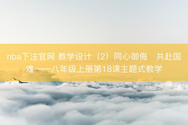 nba下注官网 教学设计(2)同心御侮・共赴国难——八年级上册第18课主题式教学点击上方蓝字关注我们 本课核心是呈现抗日战争“全民族”的本质特征,正面战场与敌后战场并非孤立存在,而是在抗日民族统一战线旗帜下,形成“正面阻击、敌后牵制”的战略配合,最终汇聚为全民族共抗侵略的洪流。 本主题以“同心御侮”为精神内核,以“双轨并进”(正面战场与敌后战场)为实践路径,将三个子目有机串联。 先分别阐释两大战场的抗战实践
