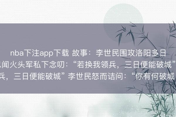 nba下注app下载 故事:李世民围攻洛阳多日未克,心中焦躁不已,忽闻火头军私下念叨:“若换我领兵,三日便能破城” 李世民怒而诘问:“你有何破城良策”隆武四年冬,洛阳城外,寒风如刀。 李世民立于高岗,眺望那座巍峨的城池,眉宇间愁云密布。 围城已久,粮草日耗,士卒疲惫,而洛阳城依旧岿然不动。 城墙上守军旌旗招展,似乎在嘲笑唐军的无功而返。 战事僵持,将士们士气低落,连一向运筹帷幄的秦王,也生出了几分烦躁。 01 大唐秦王李世民,是军中将士们心中不败的战神。 自起兵以来,他亲率大