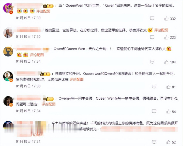 新代言堪称天选之合,她的英文昵称“QueenWen”与阿里AI助手“Qwen”发音高度契合。