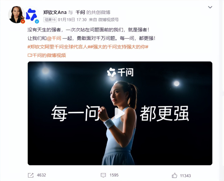 郑钦文找到了命中注定的代言话题单日阅读量破亿,主打实力双强的合作理念,呼应她的赛场拼搏精神,也凸显千问的技术突破。