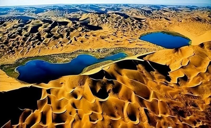 2、巴丹吉林沙漠的湖泊群:被称为 “沙漠千湖”,在特别干旱的沙漠中散播着 100 多个淡水 / 咸水湖;最高沙峰必鲁图峰海拔 1611 米,是世界最高沙山之一。