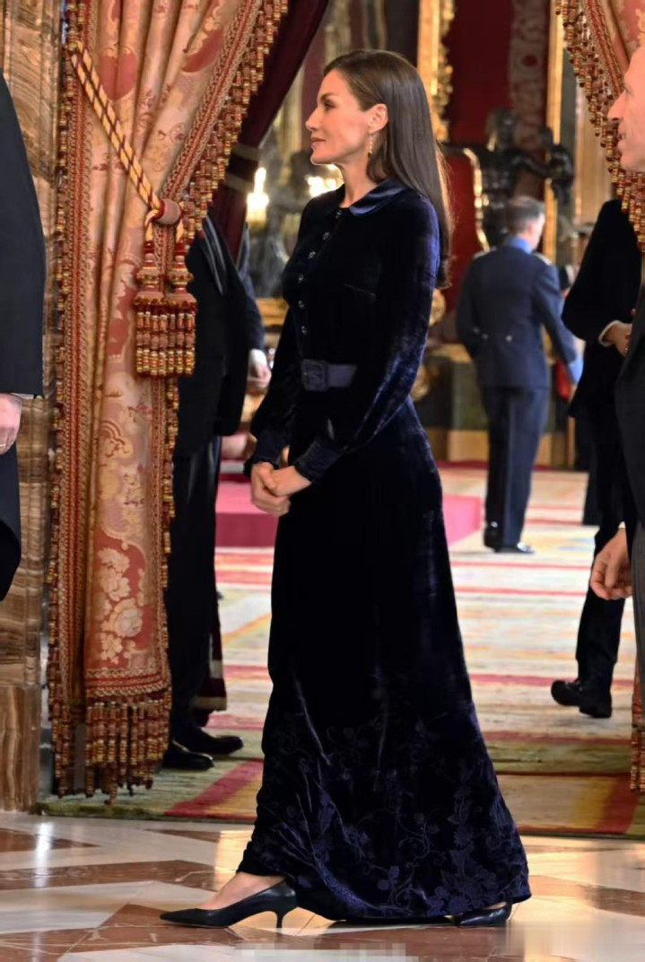 传说这几条粗呢面料的长裙都是皇宫里的成衣手工缝制的,难怪莱蒂都亚穿起来这样颜面,连腰间修饰躯壳比例的流苏都作念得刚刚好。