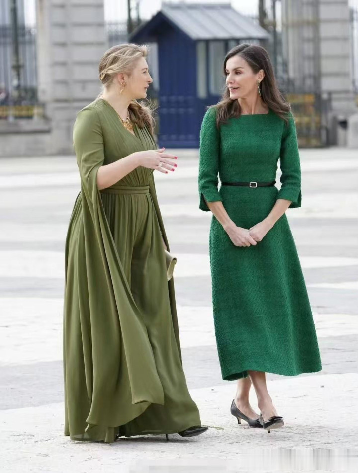 当今,即使是在王宫里会见贵客,莱蒂都亚也会选拔一对低跟鞋,三公分的高度恰到克己,猫跟鞋轻巧又不失女东谈主味。连衣裙的颜色依旧秀雅,不管是翠绿如故玫红,她都能荒诞独霸,穿出庄重高尚的王室风仪,使得平庸东谈主因为王妃的好意思好形象对这个国度的帝王产生更多好感。