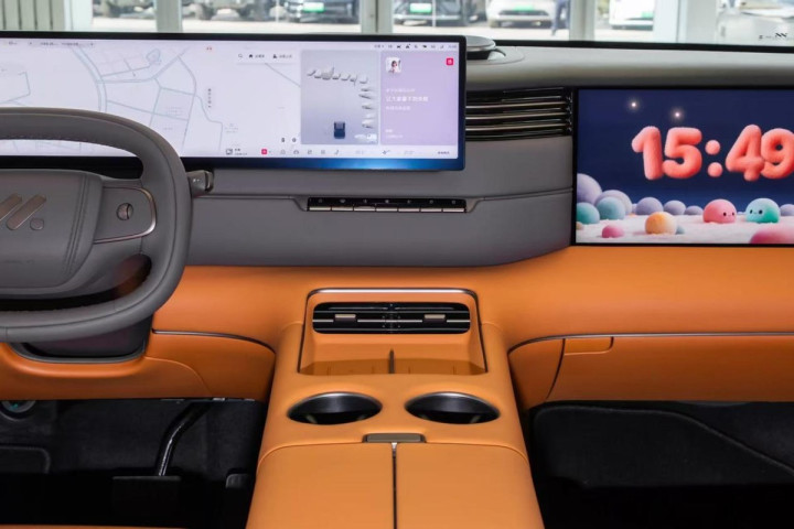 智己LS8的内饰也很有科技感,27.1英寸的大连屏缱绻,副驾驶这里还有15.6英寸的文娱屏,车内四周用的齐是高档的皮质软包,除了顺眼除外还容易收拾,车顶上用的是这种翻毛皮的材质,内饰有两种颜料可以遴荐,一个橙色一个米色,橙色更耐脏一些,米乐app米色愈加新鲜小数,至于怎样选就看个东谈主遴荐了。智己LS8的真皮多功能标的盘,辅助电动迁移和加热,这种扁平的缱绻也很有辨识度,车内提供了HUD昂首表示,白昼的表示成果也特别澄澈,怀挡的缱绻开车的期间通俗好多,而且可以给扶手这松懈空间,这里50W的手机无线充电池,两个杯架,底下有充电接口和储物格。原厂的ETC以及行车纪录仪齐是标配,也省的去外面安设了。智己LS8全车一共用到了18个扬声器,如果你升级到25个扬声器,前排的座椅这里会多出音响,音质成果会好好多。车内的氛围灯也很顺眼,见光不见灯的成果,晚上开车也不会影响视野。智己LS8的车里还有车载雪柜,夏天可以放一些生果、冰激凌,冬天可以给孩子热奶,出去露营的期间,还可以给车里装一些冰块。