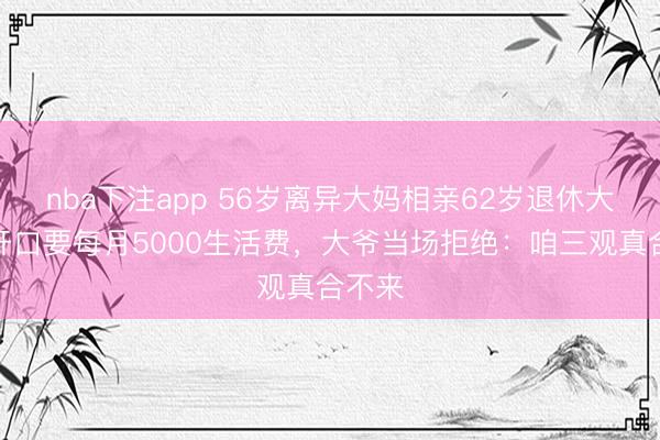 nba下注app 56岁离异大妈相亲62岁退休大爷,开口要每月5000生活费,大爷当场拒绝:咱三观真合不来茶馆包厢里,空气突然凝滞了。 胡玉琴说完那句话,手指紧紧攥着褪色的手提包带子,骨节发白。她不敢看对面男人的眼睛,只盯着青花瓷杯里缓缓下沉的茶叶。 曾瑞祥端起茶杯的手停在半空,嘴角那抹礼貌性的微笑一点点消失。他缓缓放下杯子,瓷器碰触玻璃转盘,发出清脆的“咔”一声。 “胡女士,”他的声音很平静,平静得让人心慌,“您刚才说……每月五千