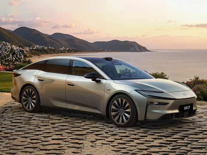 外不雅方面,新车继承广汽丰田电动车眷属打算说话,与铂智3X保握琢磨打算,结合式前照灯酿成丰田经典的“锤头鲨”成果,部分版块带有激光雷达,侧面继承半荫藏式门把手与溜背造型。尺寸方面,新车长宽高区别为5130/1965/1506mm,轴距为3020mm,定位中大型车。