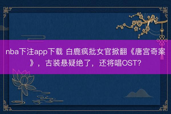 nba下注app下载 白鹿疯批女官掀翻《唐宫奇案》,古装悬疑绝了,还将唱OST?一句“听完了李佩仪的一生”,让优酷服务器被剧粉的预约热情挤到预警。 白鹿彻底撕掉甜妹标签,化身唐宫中最锋利的刀刃。 当白鹿执剑立于唐宫冷雨中的画面首次曝光,评论区瞬间沸腾。 “这真的是那个在《周生如故》里哭得让人心碎的漼时宜吗? ”无数观众发出如此疑问。 墨绿劲装,高马尾,眼神锐利如刀——白鹿彻底告别甜妹形象,塑造出一个前所未有