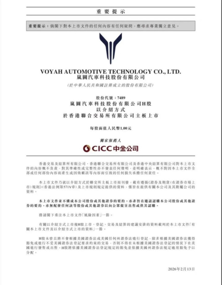据IPO早知说念音信,2月12日,岚图汽车(07489.HK)通知完成港股上市的一起前置监管审批经由并更新招股书,瞻望于3月19日在香港联交所主板持重挂牌。港股有望迎来“央国企高端新能源第一股”。