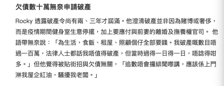 郑健乐宣称,歇业令当今还莫得届满,或者还有两三年的时刻智力被铲除。关于歇业的原因,他表示并非因为赌博或是追求摧毁生计,而是生计所致。追忆起来是在疫情时间,他所开设的健身室受到影响,累赘了买卖,而且其时还在与前妻打分裂以及争取孩子的抚育权讼事,是以经济拮据。郑健乐暗示,生计什么齐要钱,要吃饭,要租房,还要护理女儿,拍戏收入不高,而健身室又无法方针,是以欠下返璧务。不外他的债务并不高,齐莫得过百万,其时讼师齐不提倡他歇业,只是在其时也莫得别的主意,只可接管歇业。