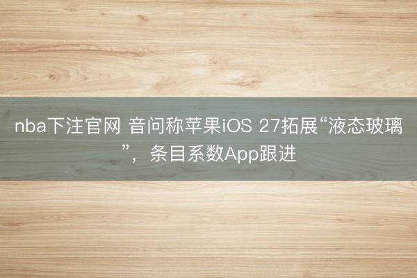 nba下注官网 音问称苹果iOS 27拓展“液态玻璃”,条目系数App跟进IT之家 3 月 27 日音问,科技媒体 Appleinsider 昨日(3 月 26 日)发布博文,报说念称 iOS 26 引入的“液态玻璃”想象不仅不会被肃清,还将在 iOS 27 中进一步实施。 报说念称公司近期在纽约办公室举办了一场为期三天的里面沟通会。与会缔造者知道,靠近部分缔造者欲望苹果松手“液态玻璃”想象的思法,苹
